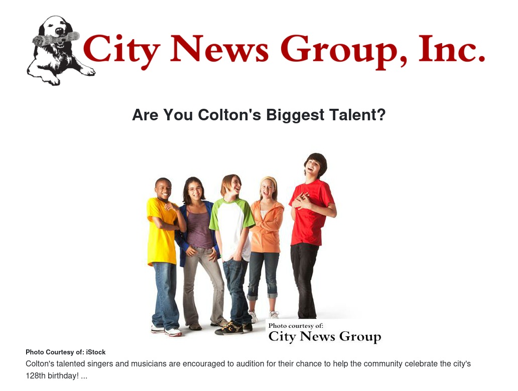 All singers and musicians in Colton are invited to show off their talents and skills, and audition for a chance to perform during Colton's annual birthday celebration in July.