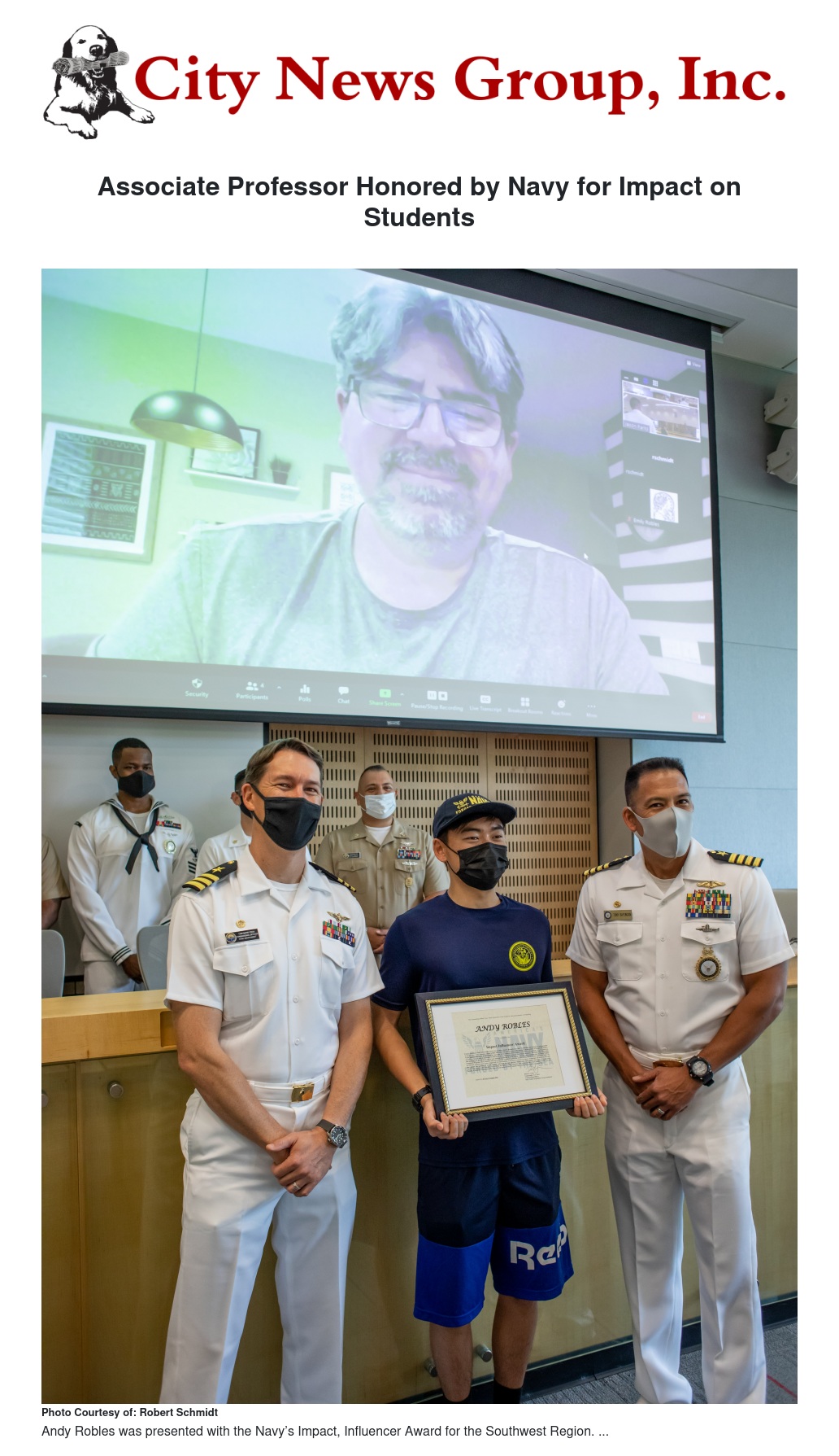 Associate Professor Honored by Navy for Impact on Students by Robert Schmidt - City News Group, Inc.