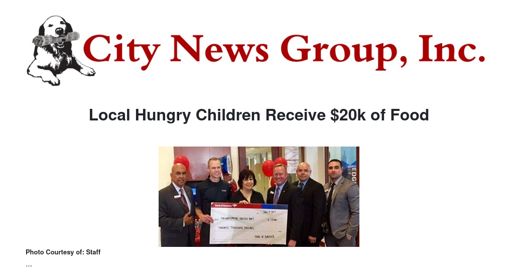Inland Empire United Way (IEUW) has received a $20,000 grant from the Bank of America Charitable Foundation to feed hungry kids in the Inland Empire through its Kids Pack program. Kids Pack addresses food insecurity for homeless and very low-income children, who rely on free school meals, by providing a backpack of food each weekend during the school year. The grant will allow IEUW to deliver this vital program to 240 kids for the entire school year.