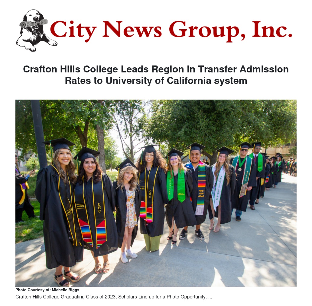 Crafton Hills College Leads Region in Transfer Admission Rates to University of California system by Michelle Riggs - City News Group, Inc.