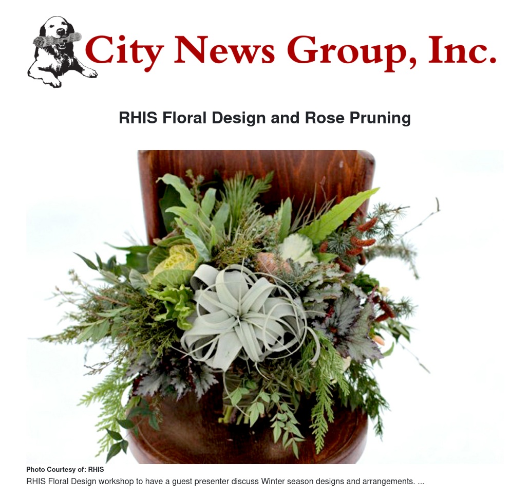 RHIS will have a guest presenter to share ideas on floral arrangements and designs for the winter season.