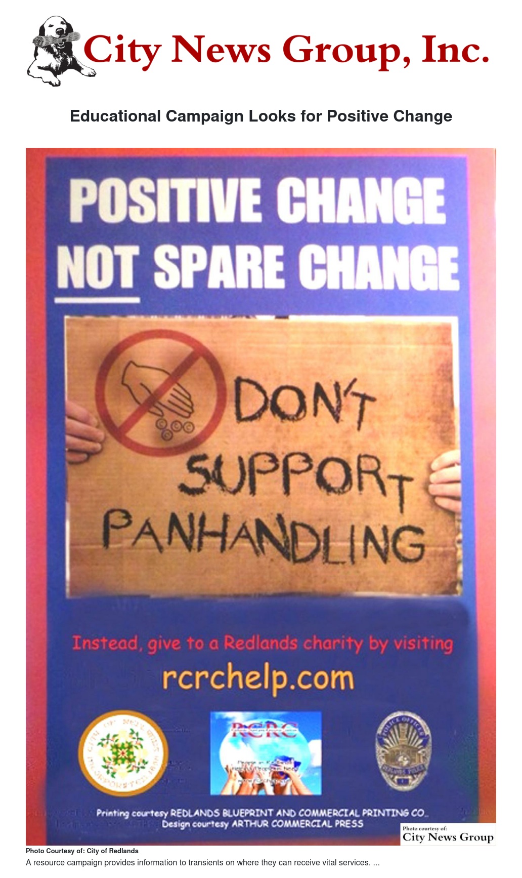 In the effort to curb panhandling in the city, the Redlands Police Department has launched a campaign that focuses on providing resource information to transients in the city.