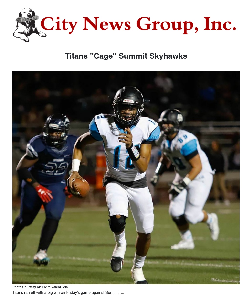 Grand Terrace Titans: Defense will need to step up and stop the run because of Summit’s rushing duo attack, makes up their whole offensive yardage.