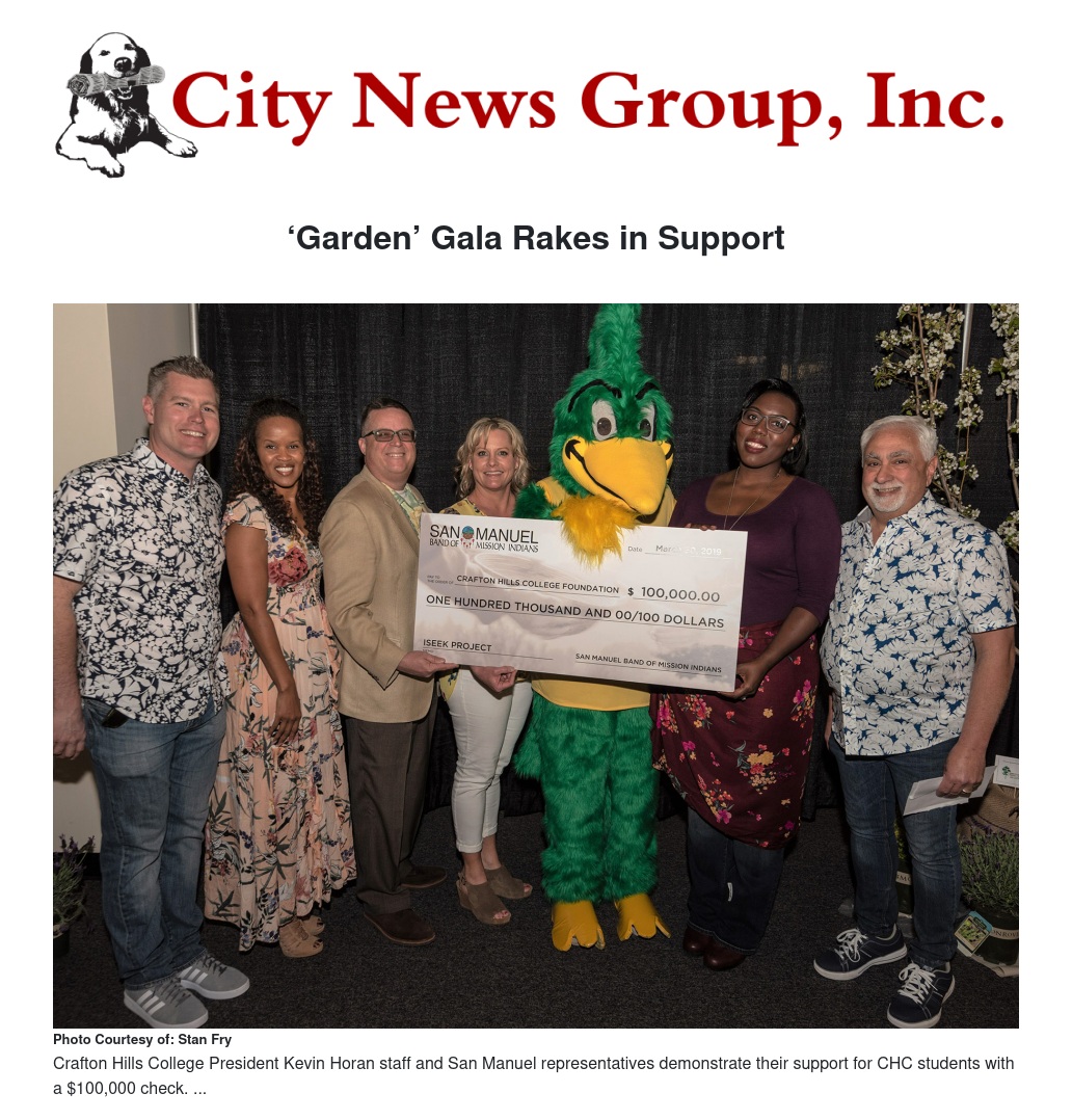 Crafton Hills College Foundation’s Garden Party Gala on March 28 brought in $125,000 thanks to the generous support of those who turned out for the affair.