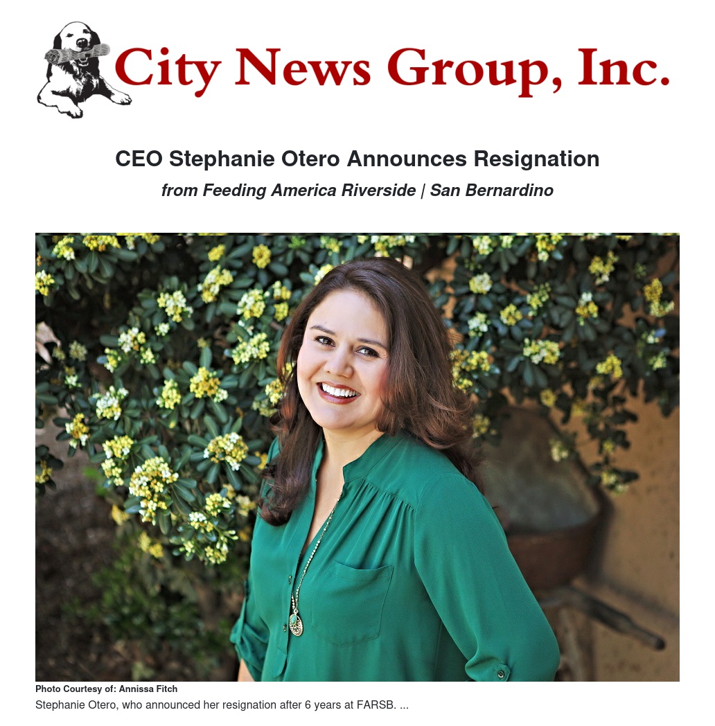 After 6 years of feeding the hungry, Feeding America Riverside | San Bernardino (FARSB) CEO Stephanie Otero has announced her resignation.