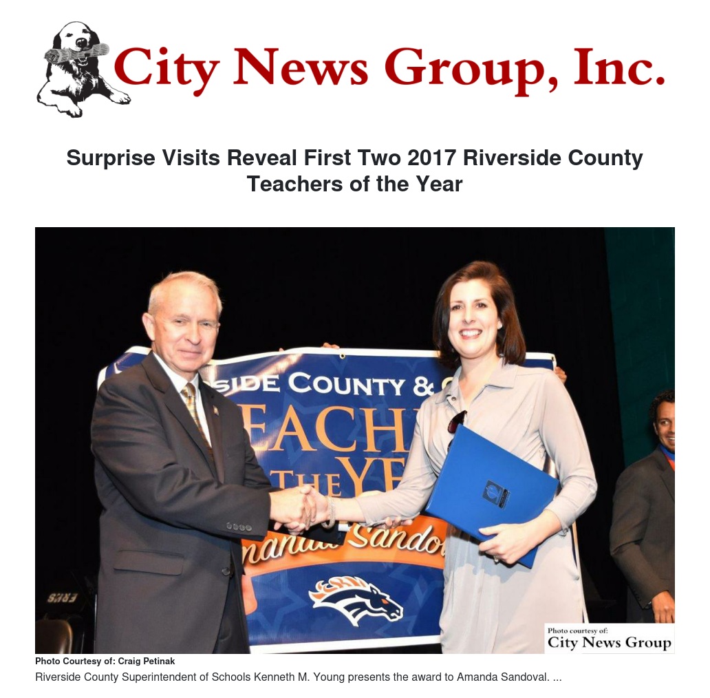 Surprise Visits Reveal First Two 2017 Riverside County Teachers of the Year