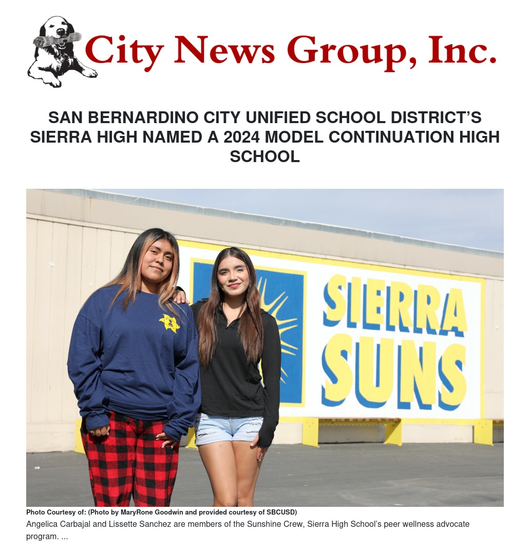 SAN BERNARDINO CITY UNIFIED SCHOOL DISTRICT’S SIERRA HIGH NAMED A 2024 MODEL CONTINUATION HIGH SCHOOL by Cameron Lindsey - City News Group, Inc.