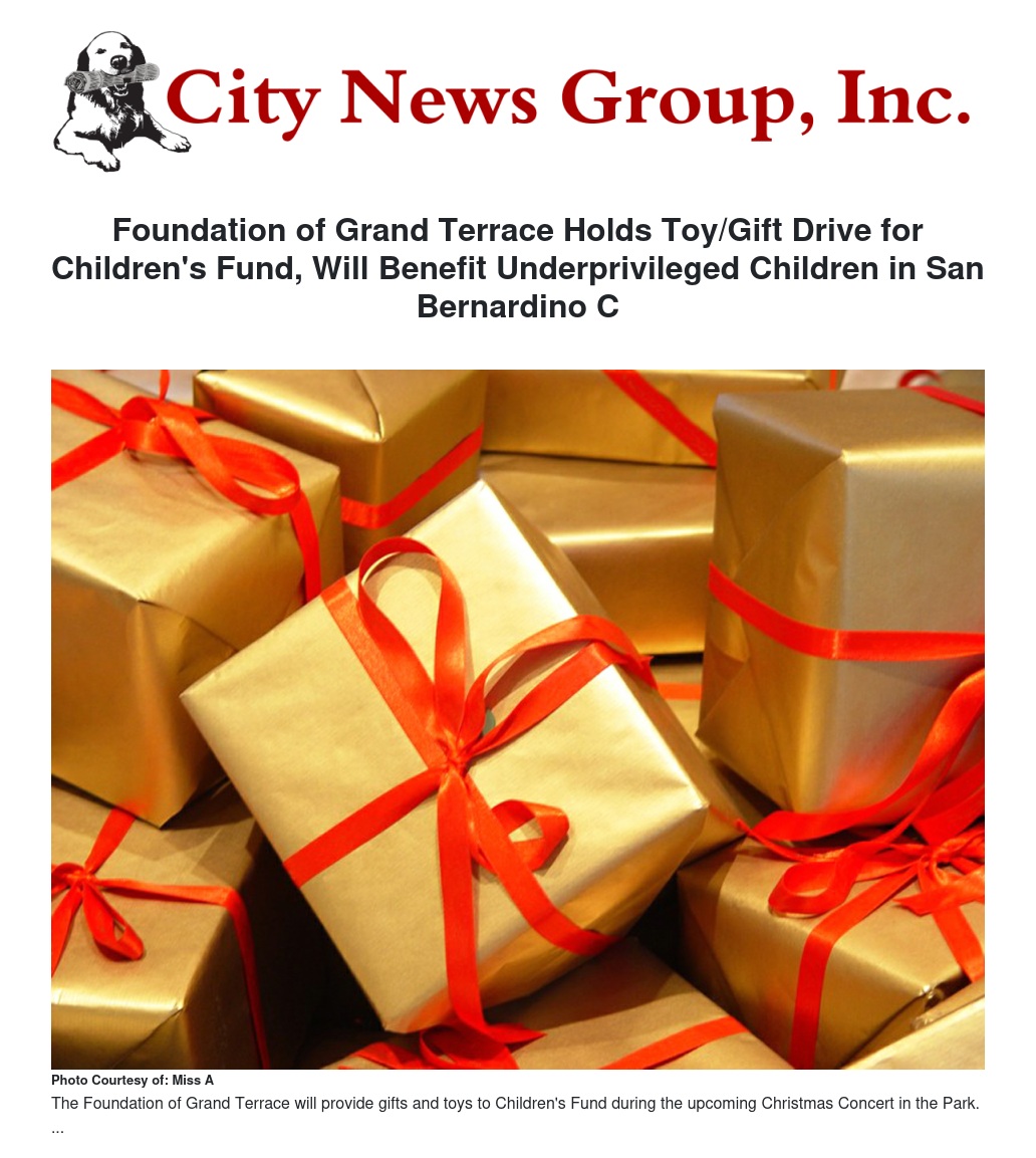 Foundation of Grand Terrace Holds Toy/Gift Drive for Children's Fund, Will Benefit Underprivileged Children in San Bernardino C