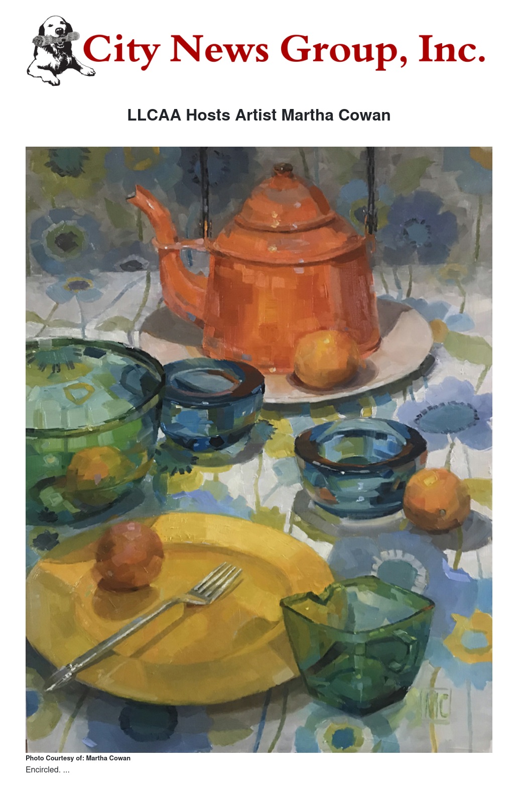 On Sunday, January 13, from 2 to 4 pm the Loma Linda Cultural Arts Association* will welcome artist Martha Cowan as demonstrator/lecturer for the first monthly meeting of 2019. Cowan is one of those whose natural gifts were recognized and supported by art-minded parents. She relates that her first painting class—at age 13--convinced her that she had found her life work: oil painting!