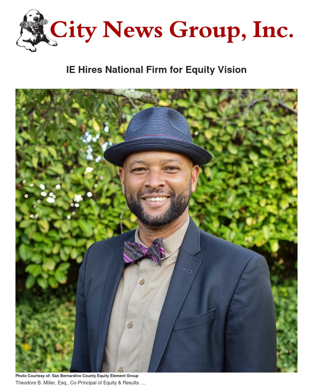 San Bernardino County, in partnership with the San Bernardino County Equity Element Group (SBC Equity Element Group), has retained the firm of Equity & Results, a multiracial learning organization expert in supporting organizations in advancing racial equity and liberation through institutional change. A co-principal and co-founder, Theodore B. Miller, Esq., leads the engagement.