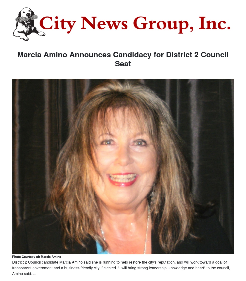 Marcia Amino Announces Candidacy for District 2 Council Seat