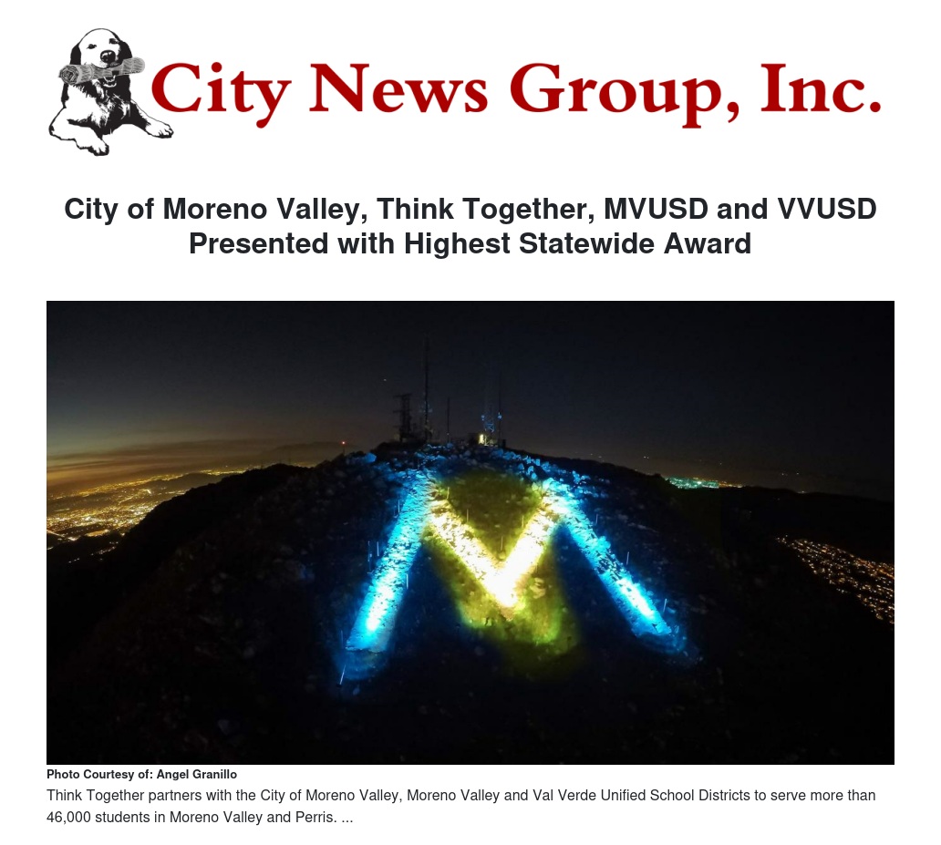 City of Moreno Valley, Think Together, MVUSD and VVUSD Presented with Highest Statewide Award by Angel Granillo - City News Group, Inc.
