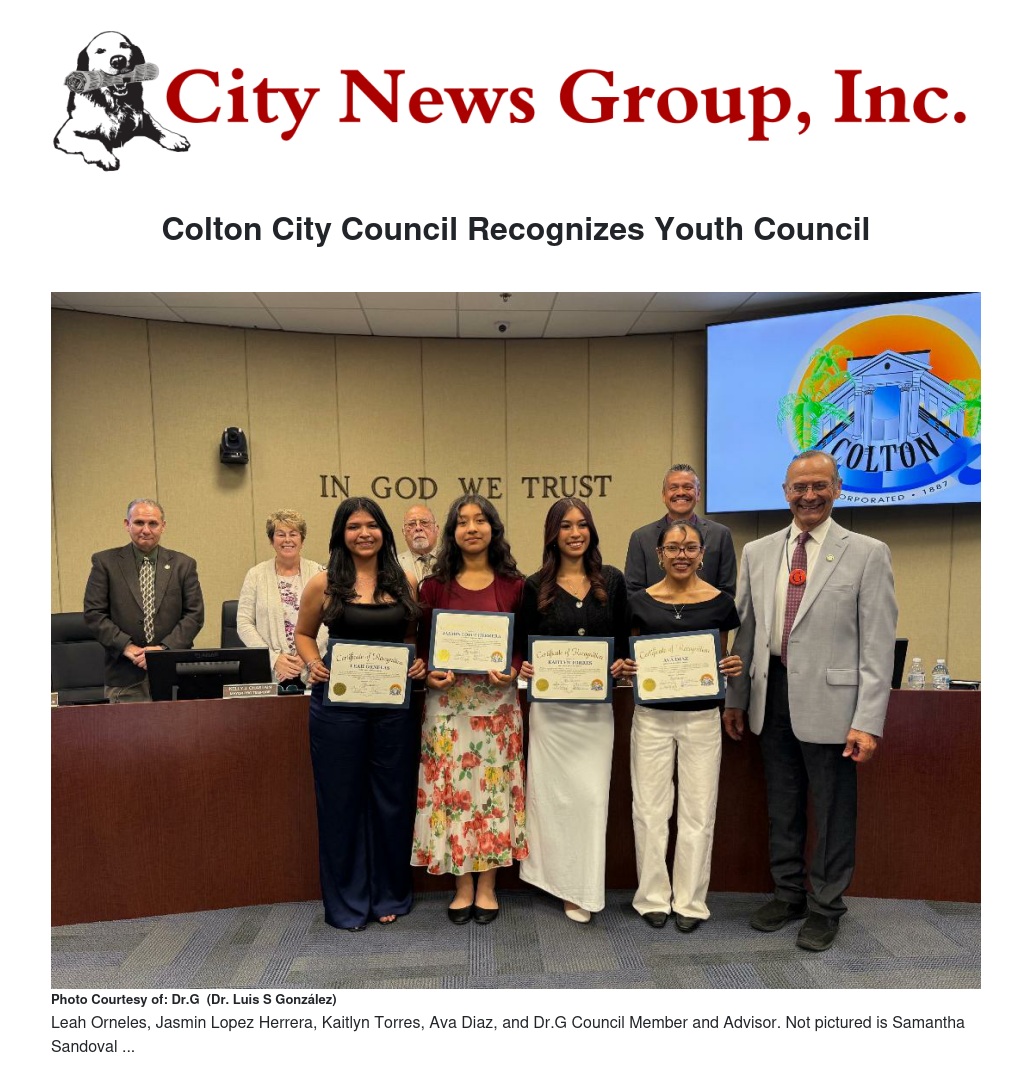 Colton City Council Recognizes Youth Council by Dr.G  (Dr. Luis S González) - City News Group, Inc.