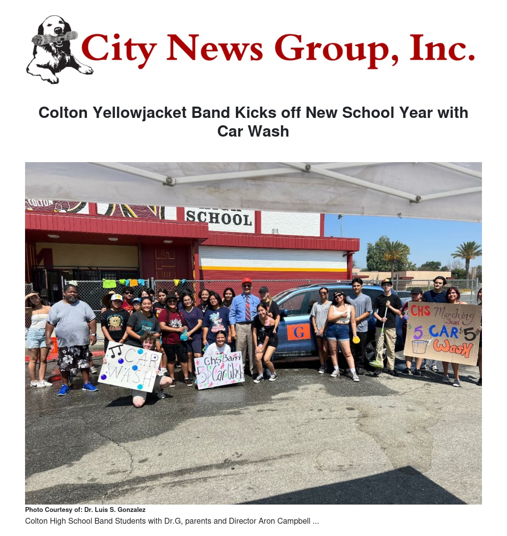 Last Saturday, about 40 band students from Colton High School rallied around Band Director Aron Campbell to hold their first event of the coming new season. With the opening of school just around the corner, the members of the Yellowjacket Band knew just what to do when tasked with organizing a fundraiser for much needed musical equipment and supplies.
