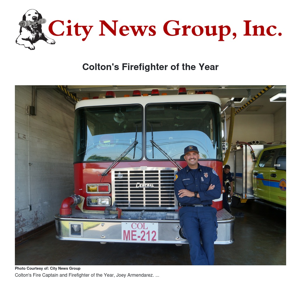 In this year’s Annual Installation & Awards Luncheon, hosted by Colton’s Chamber of Commerce, two individuals were awarded for their hard work and dedication in their profession. This year, Colton’s Firefighter of the Year award was given to Joey Armendarez, Fire Captain of Colton Fire Department Station 212.