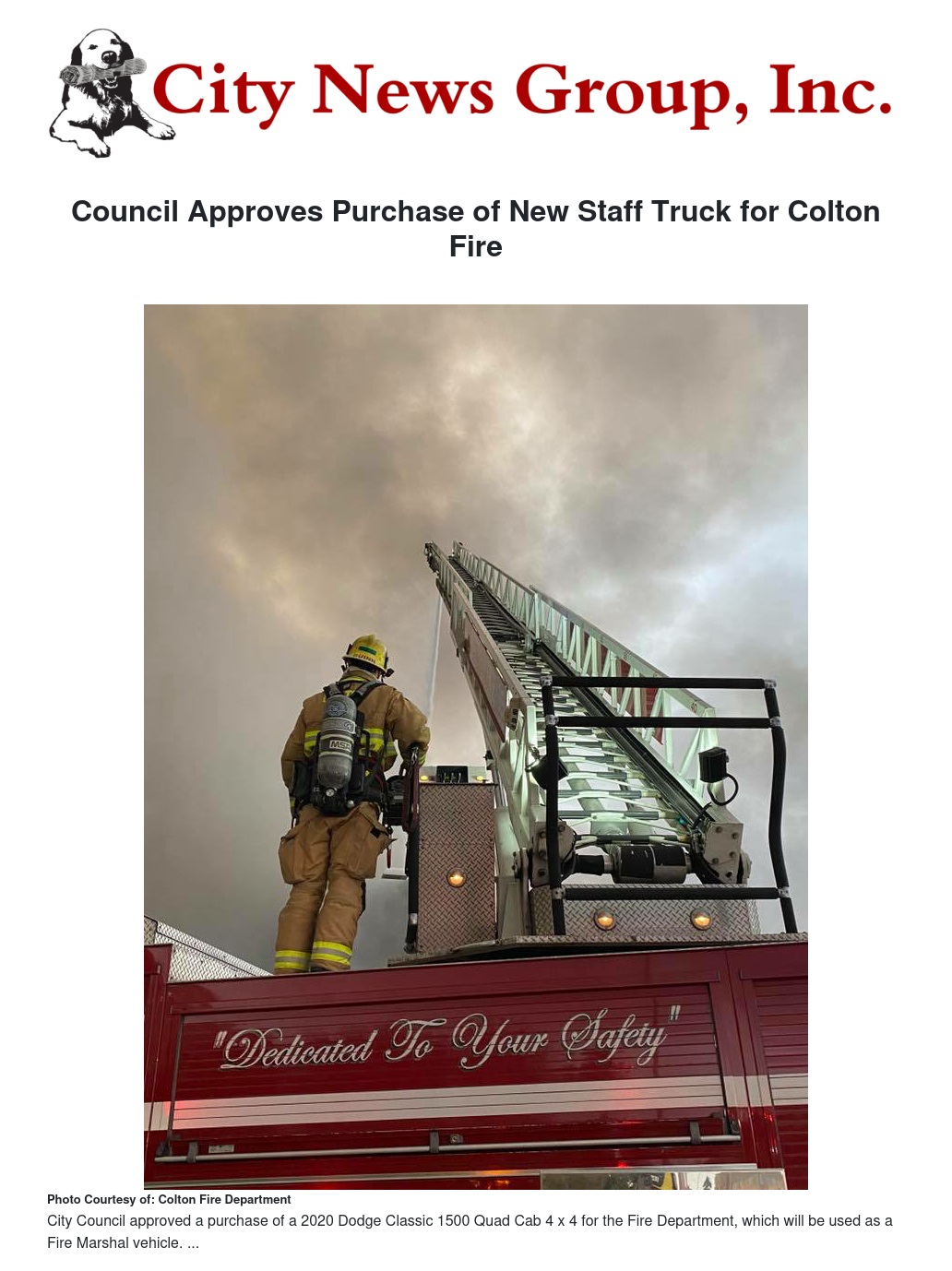 During the last City Council meeting on September 1, 2020, the City Council approved a purchase of a 2020 Dodge Classic 1500 Quad Cab 4 x 4 for the Fire Department.