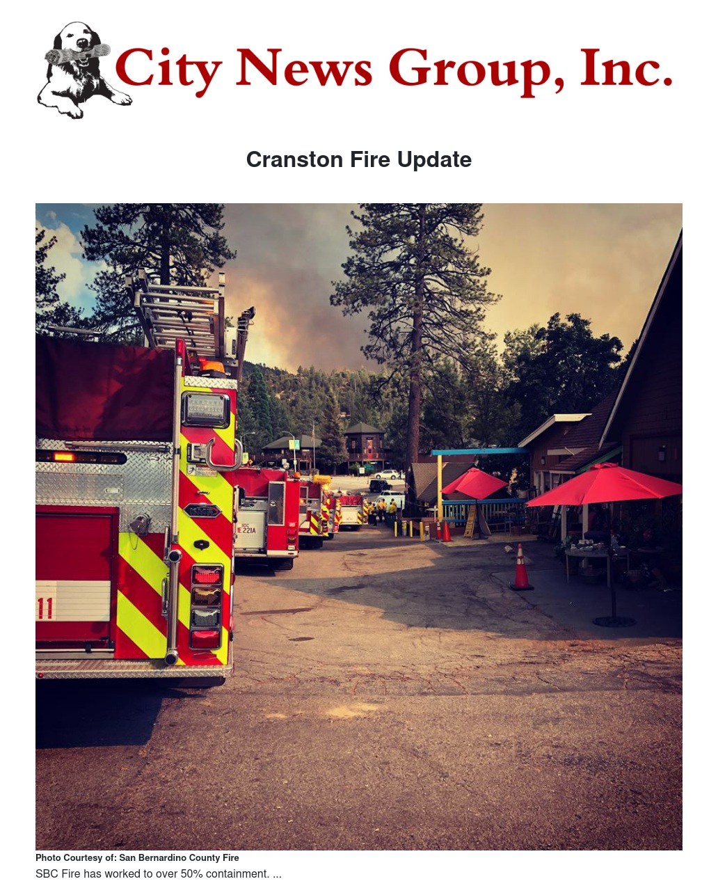 The Riverside County Fire Department in cooperation with CAL FIRE released initial damage inspections completed on the Cranston Fire. Damage Inspection Teams completed initial structure and infrastructure evaluations: a total of 12 buildings were destroyed and five others damaged.