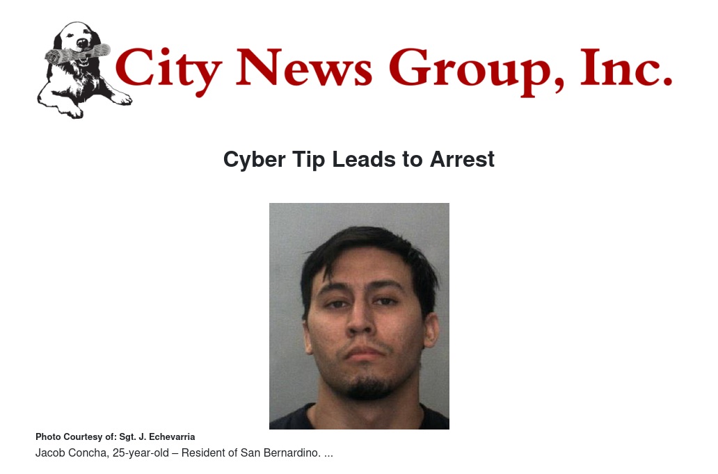 Investigators from the San Bernardino Police Department, Internet Crimes Against Children (ICAC) Detail, began an investigation into a cyber tip that was reported by an Electronic Service Provider. The cyber tip contained various images of prepubescent child pornography. Through an extensive investigation, investigators determined that multiple images were downloaded to a device in the city of San Bernardino.