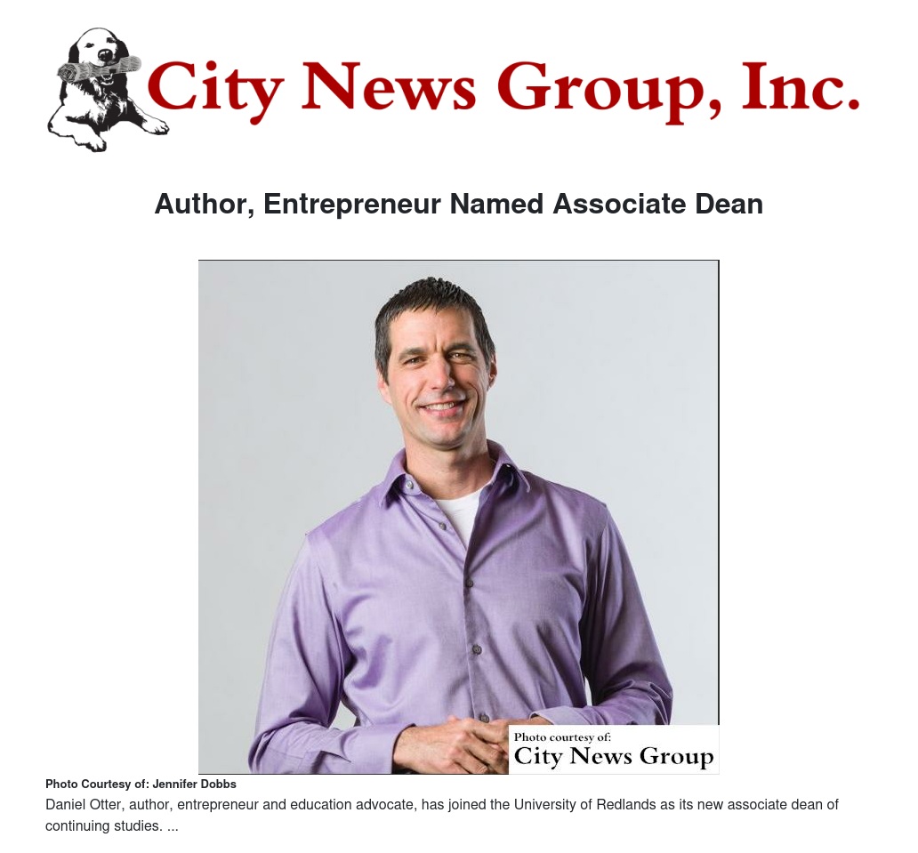 REDLANDS>> Dr. Daniel Otter, author, entrepreneur and education advocate, has joined the University of Redlands as its new associate dean of Continuing Studies.