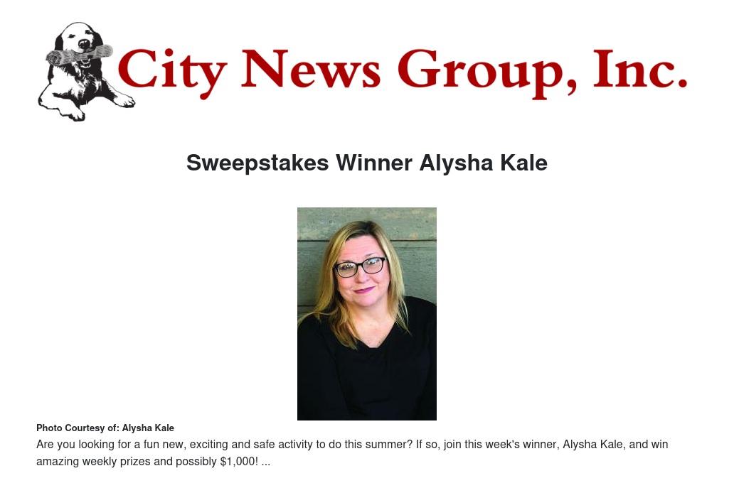 Sweepstakes Winner Alysha Kale by City News Group - City News Group, Inc.