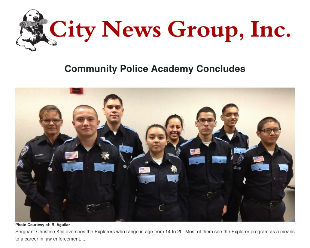 Volunteer and 14-year veteran, Sergeant Christine Keil runs a tight ship, ensuring that cadets maintain a 2.0 GPA or better, among many other cadet demands. Each Explorer goes through an extensive screening and training process to be part of the team. In addition to their own school related work, Explorers must learn radio, vehicle and penal codes. Training is conducted mimicking real-life scenarios, similar to the training of regular officers.