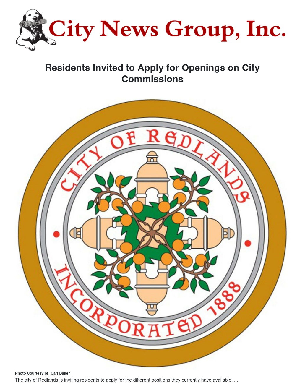 The City of Redlands invites individuals to apply for positions on the A.K. Smiley Library Board of Trustees, the Cultural Arts and the Human Relations commissions. Deadline for filing applications is Dec.19. Members are appointed by the City Council.
