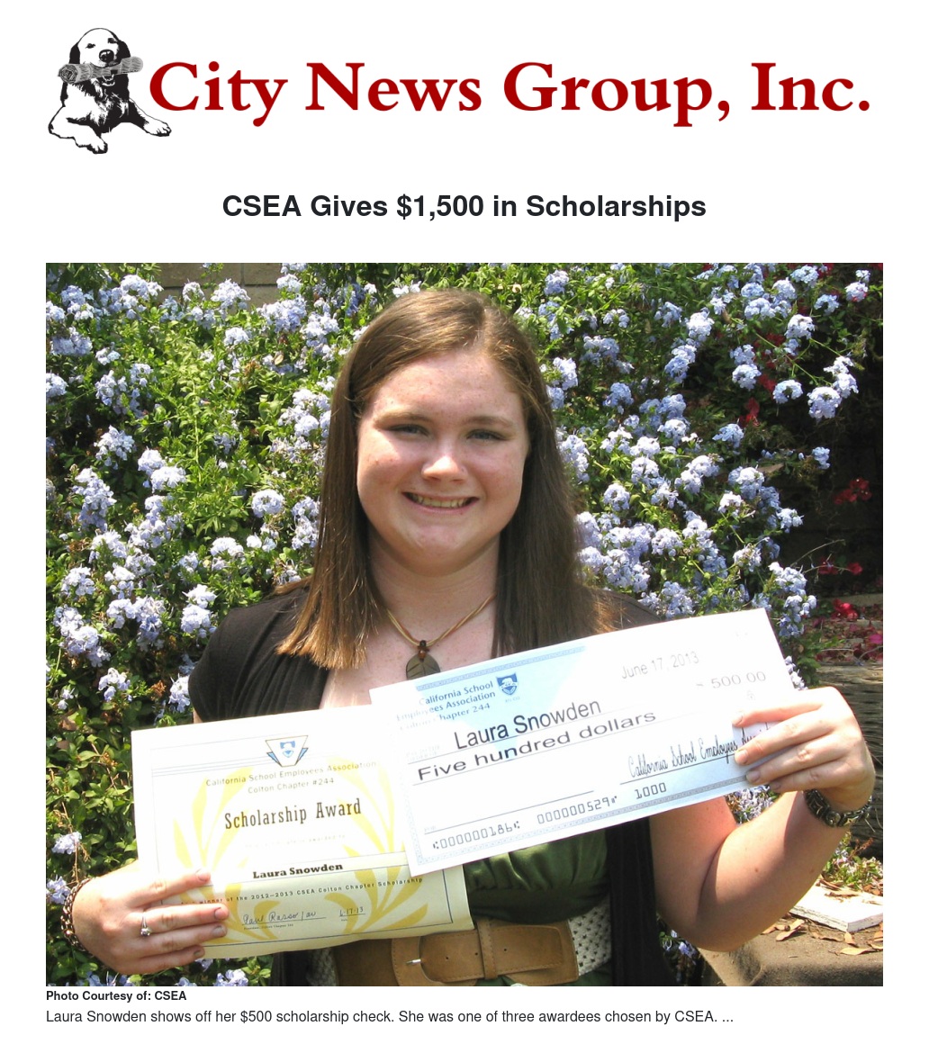 It’s no secret that college expenses can be tough to cover. That’s why the California School Employees Association (CSEA) Colton Chapter 244 recently awarded three college-bound students with scholarships totaling $500 each.