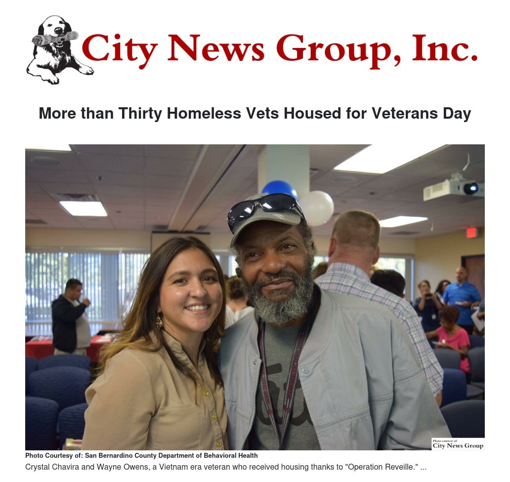 SAN BERNARDINO>> This year in San Bernardino County, Veterans Day not only served as a day to recognize the invaluable service of veterans to our nation, but will also mark the day a county wide goal was achieved; a goal to provide 34 once homeless veterans with a place to call home.