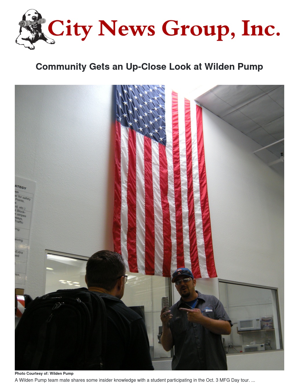 Over 60 people came in and listened to presentations about manufacturing and then took a tour of the plant. Attendees got an up-close look at the local company that invented the air-operated, double-diaphragm pump and whose products are used across the globe to pump everything from candy coatings and beer to paint and gasoline. Wilden's pumps clear out flooded buildings and mines, and help factories process toxic waste. Known for innovation and high quality, Wilden pumps work 24/7.