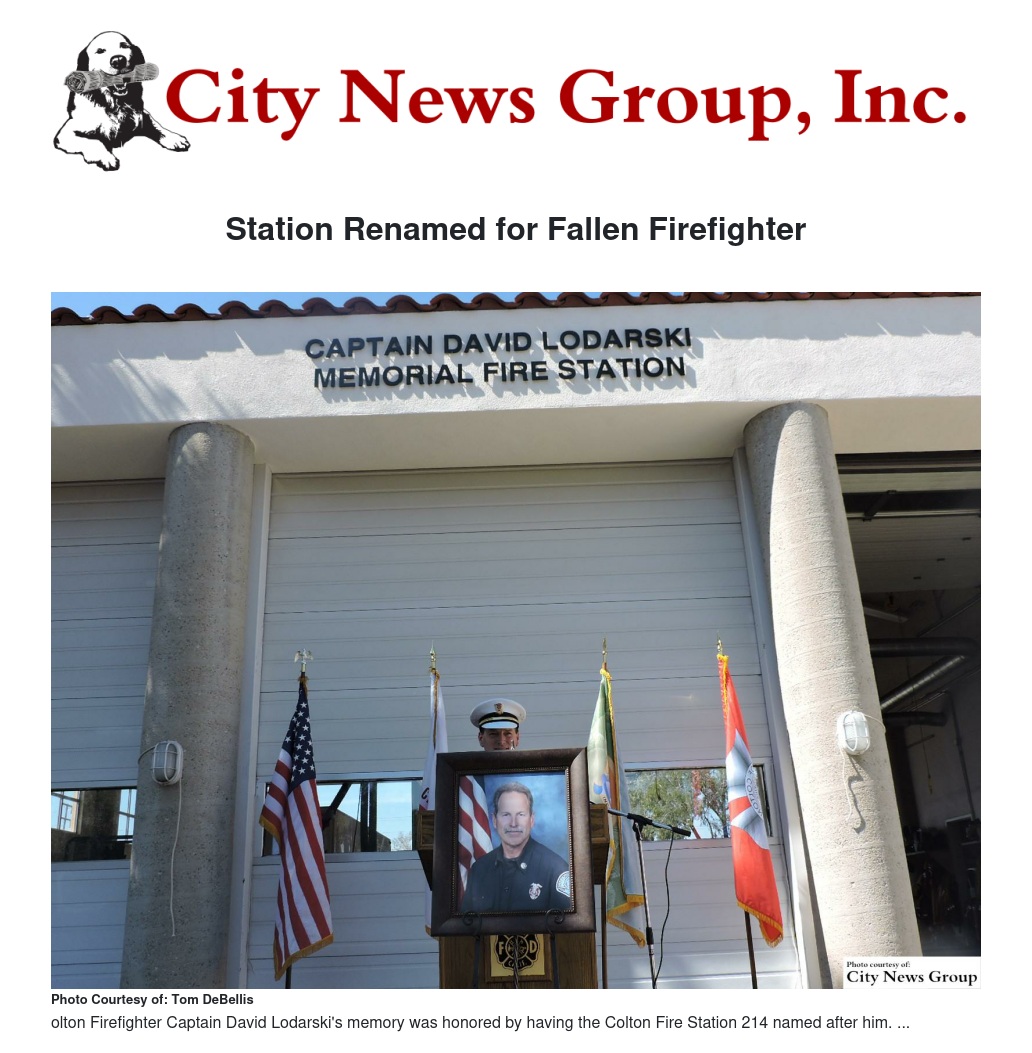 On Saturday, March 11, Lodarski's memory was honored at a dedication ceremony where the Colton Fire Station 214 was named after him. On Tuesday, Feb. 7, the City of Colton had given approval for the plans to rename the fire station after Lodarski.