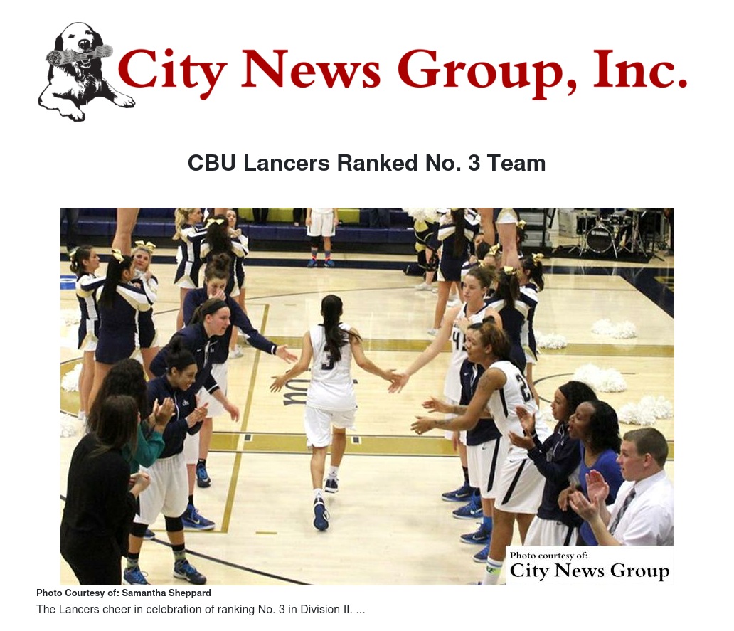 The WBCA/USA Today Sports Preason Top 25 Division II Women's Coaches' Poll puts CBU in the third spot behind No. 2 Lewis and No. 1 Emoria State, with the Lancers grabbing 487 points in the poll and three first-place votes. The 2014-15 NCAA Division II Champions California University of Pennsylvania debuts as the No. 5 team, despite picking up six first-place votes.