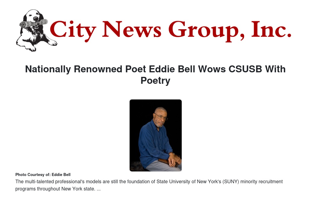 Educator, photographer, author and poet Edward (Eddie) Bell read his poetry from 5-7 p.m. in the John M. Pfau Library, room PL 4005e on Monday, Feb. 10, at Cal State San Bernardino.