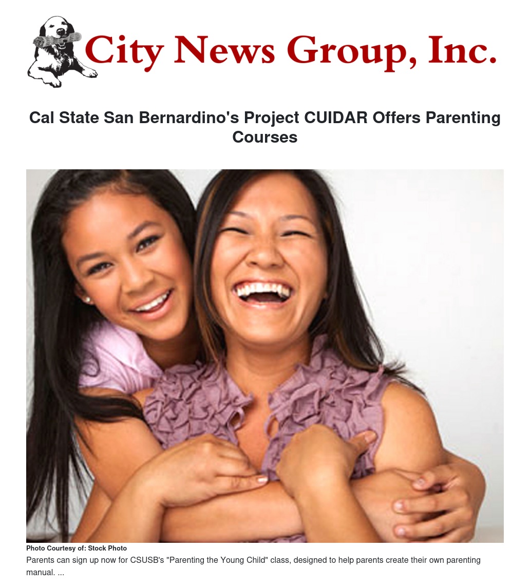 Project CUIDAR, a First 5-funded program at Cal State San Bernardino, will offer a series of parenting classes, the first beginning Jan. 13, at five new locations in the Inland Empire.