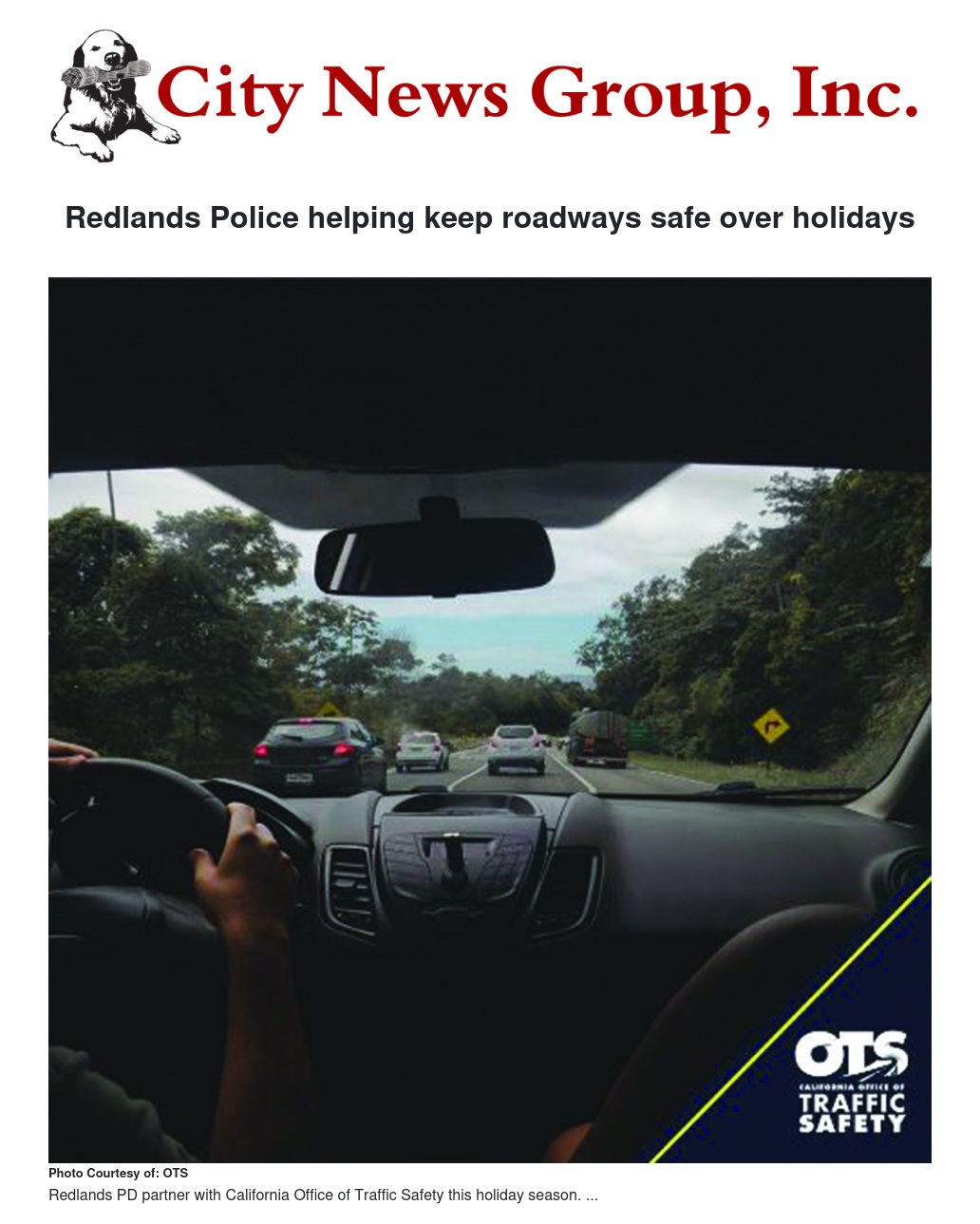 Redlands Police helping keep roadways safe over holidays by Carl Baker - City News Group, Inc.