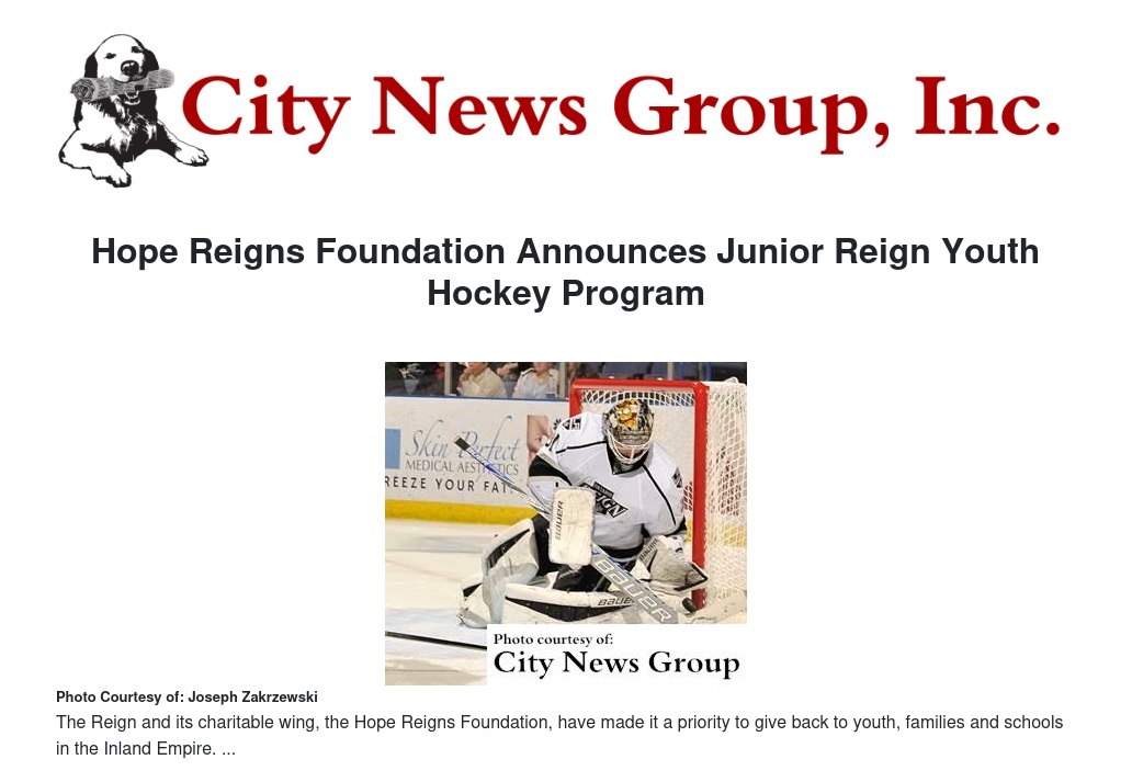 Hope Reigns Foundation Announces Junior Reign Youth Hockey Program