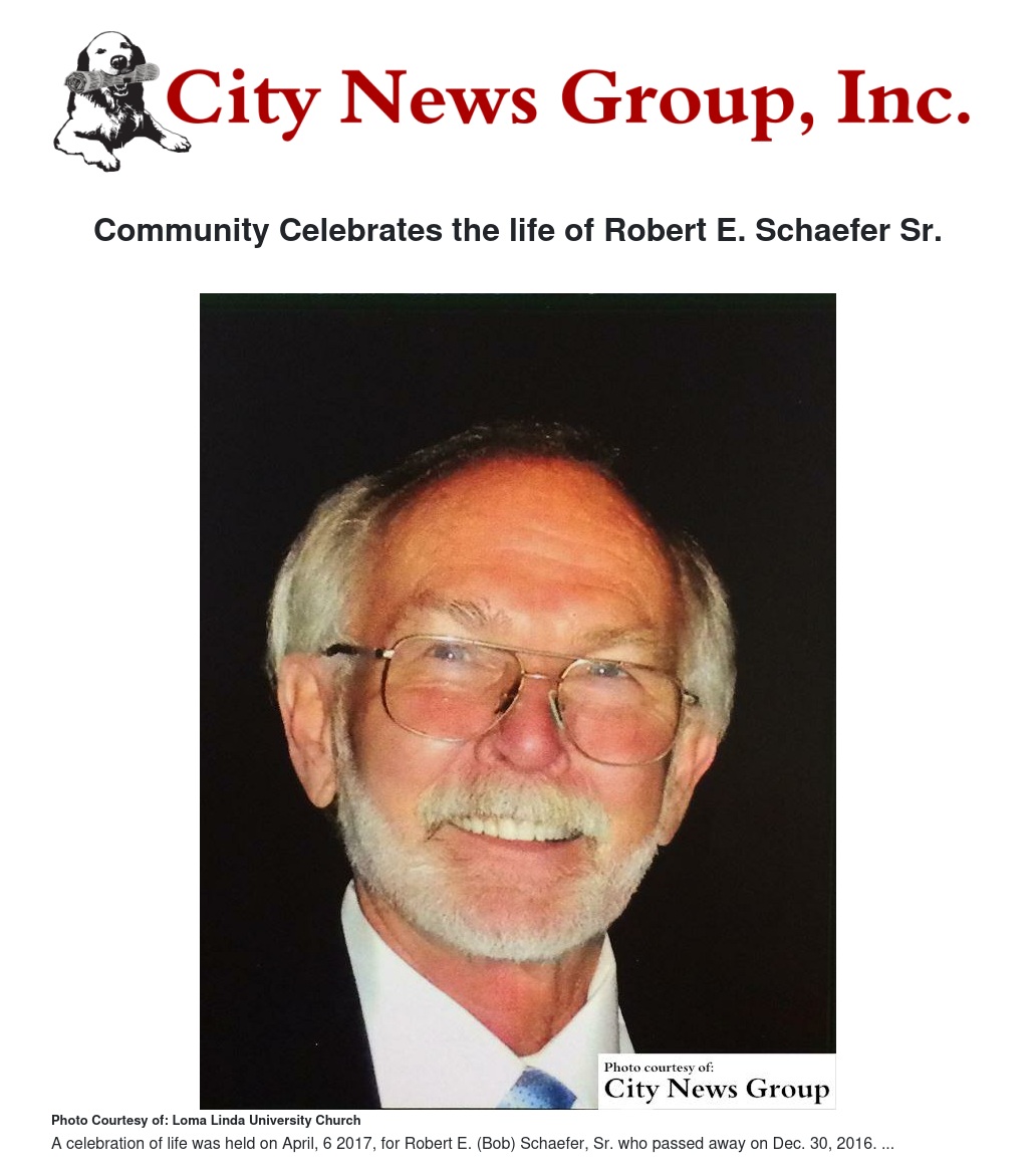 LOMA LINDA>> On April 6, 2017 a celebration of life was held in honor of Robert E. (Bob) Schaefer Sr. who passed away on Dec. 30, 2016.