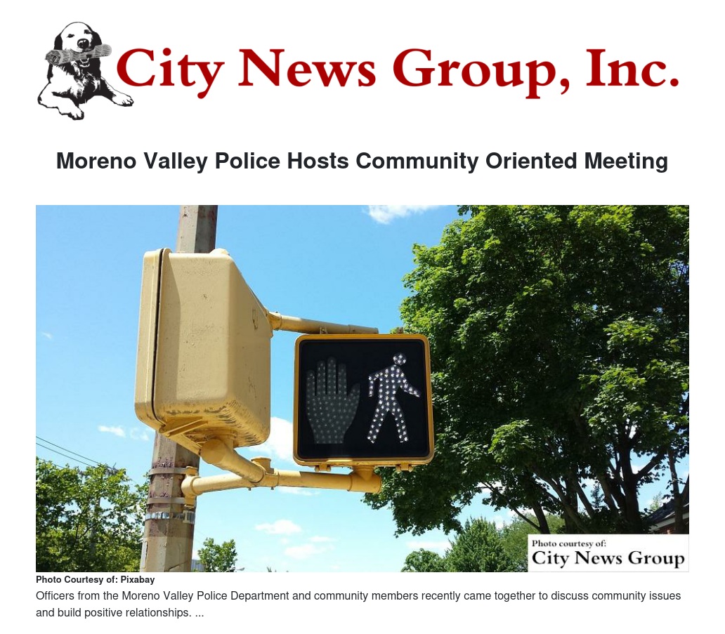 By Moreno Valley Police Dept., Community Writer