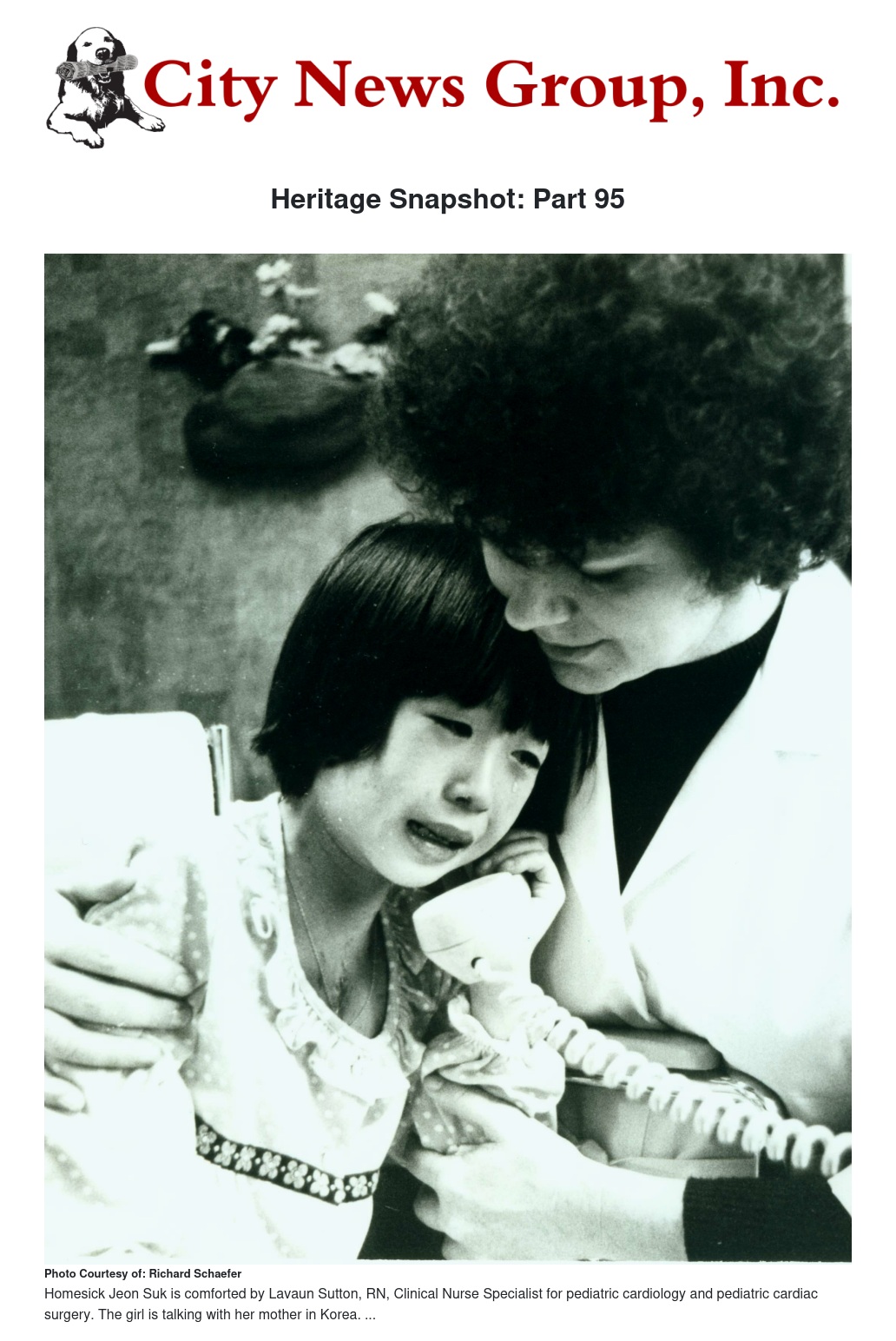Television cameramen and newspaper photographers met a bewildered little girl with blue lips as she arrived with her escort aboard a jetliner at Los Angeles International Airport on December 19, 1979. Jeon Suk Kang, the 9-year-old from Pusan, South Korea, left the United States three months later with a mended heart, pink lips, a scrapbook full of pictures, and a memory of unforgettable experiences. Above all, she departed with an excellent opportunity to lead a normal, healthy life.