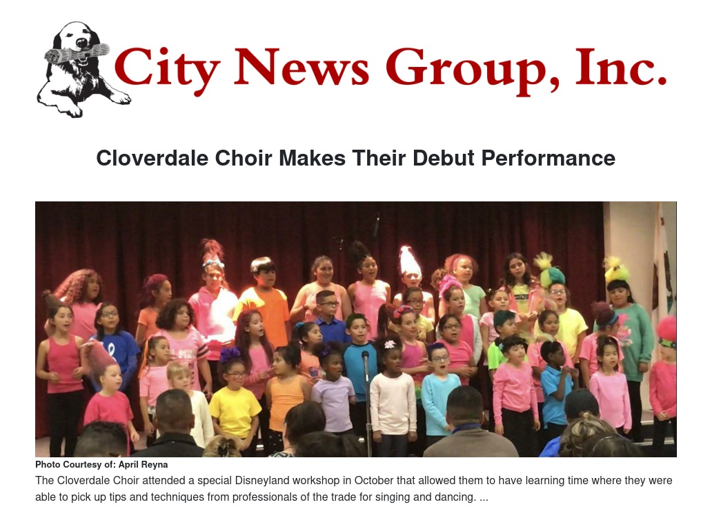 On Wednesday November 29th, the Cloverdale Choir made their first performance of the year. The choir is led by Mrs. Dawn Rivera with two of her assistants. The choir began practicing in September and has had rehearsals once a week in preparation for their performance. Children from 2nd grade through 5th grade had the chance to take part and join in. There was approximately 50 kids in the choir for this performance.