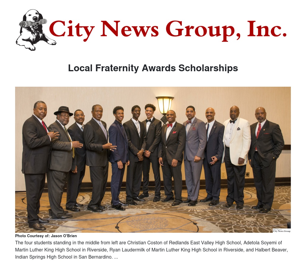 Community and educational leaders were in attendance to acknowledge the academic accomplishments of the high school seniors, who are among the top performers in their graduating classes. Superintendents Dr. Dale Marsden of the San Bernardino City Unified School District and Dr. Judy White of the Moreno Valley Unified School District were on hand to celebrate as the fraternity awarded a total of $4,000 in scholarships; $1,000 to each of the four Inland Empire students.