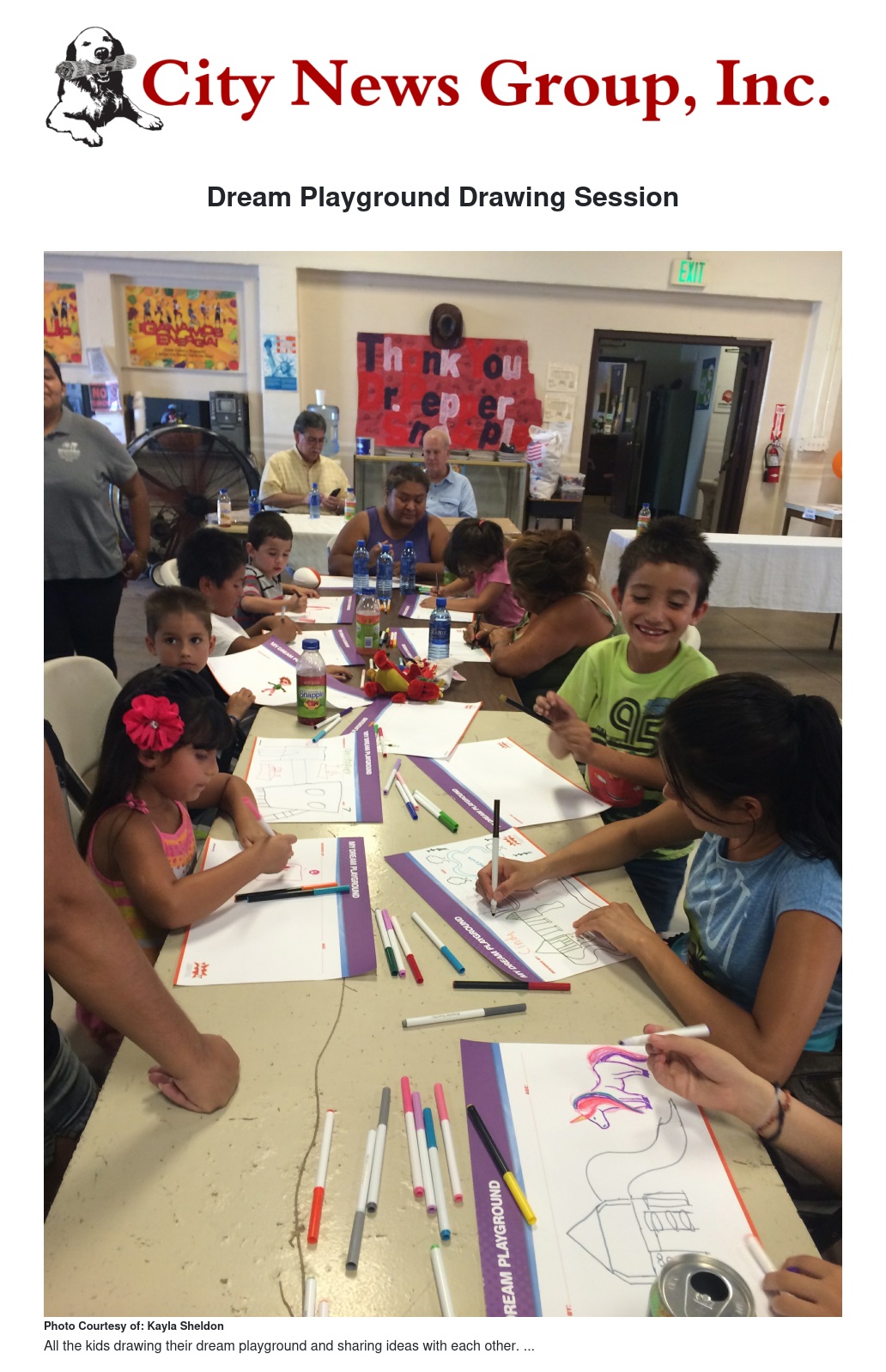 On Aug. 28, the City of San Bernardino, KaBOOM! and Dr. Pepper Snapple Group hosted a children’s design session at the Home of Neighborly Services. Children throughout the community gathered to draw their “dream playground”.