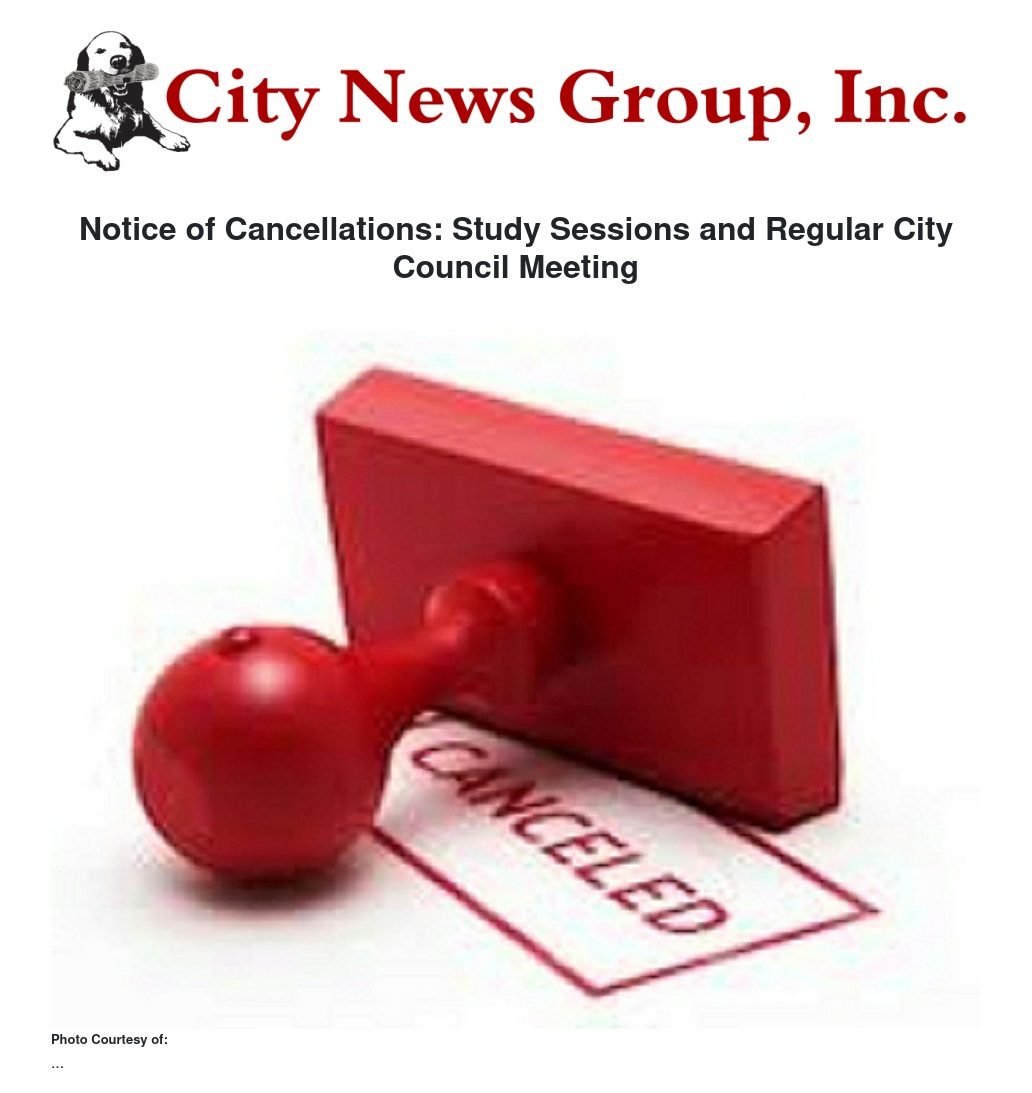 Notice of Cancellations: Study Sessions and Regular City Council Meeting