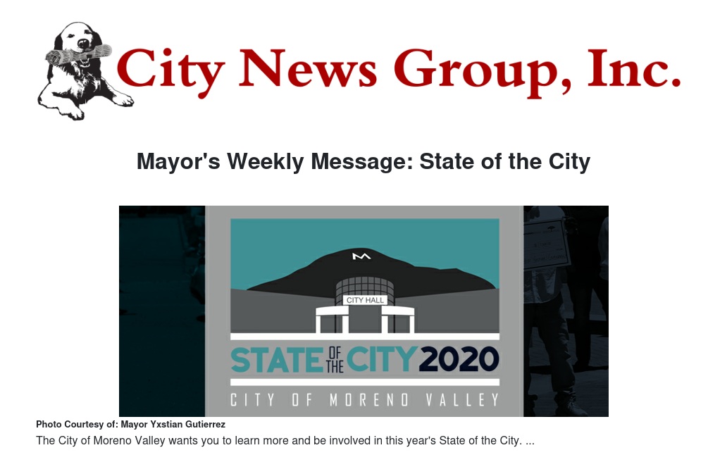 To learn more, please join me Thursday, Aug. 20, at 11 a.m. for State of the City 2020 on Facebook, YouTube or channel MV3.