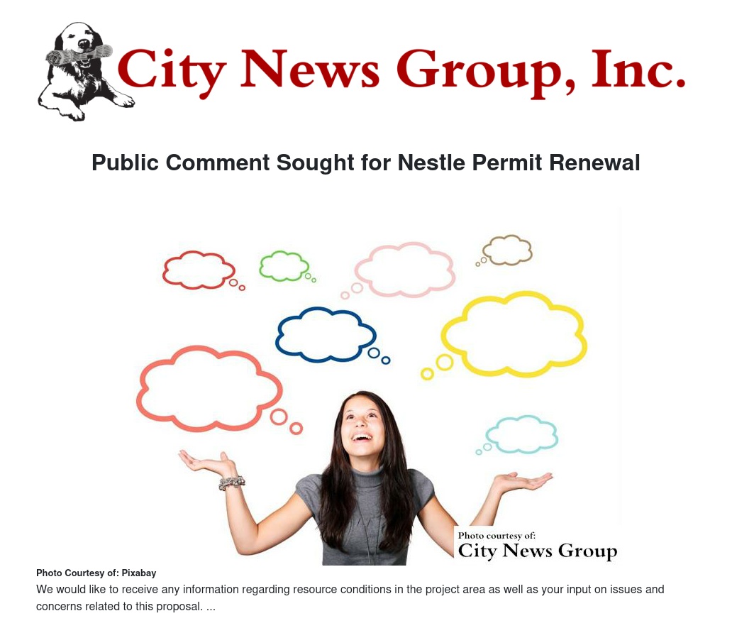 Public Comment Sought for Nestle Permit Renewal