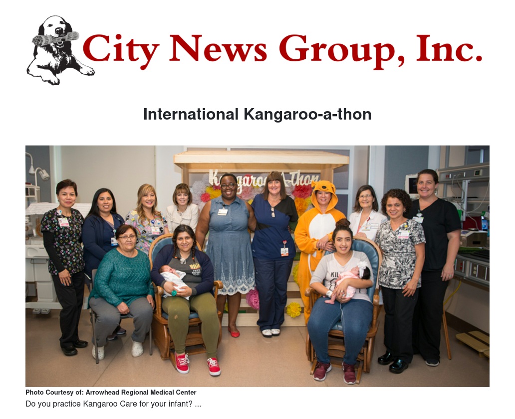 Arrowhead Regional Medical Center’s (ARMC) Neonatal Intensive Care Unit (NICU) participated in the Sixth Annual Kangaroo Challenge that took place through May 15. This international Kangaroo-a-Thon spotlights the benefits of Kangaroo Care (KC) for infants and their parents, while encouraging NICU staff members to adopt KC for premature infants.