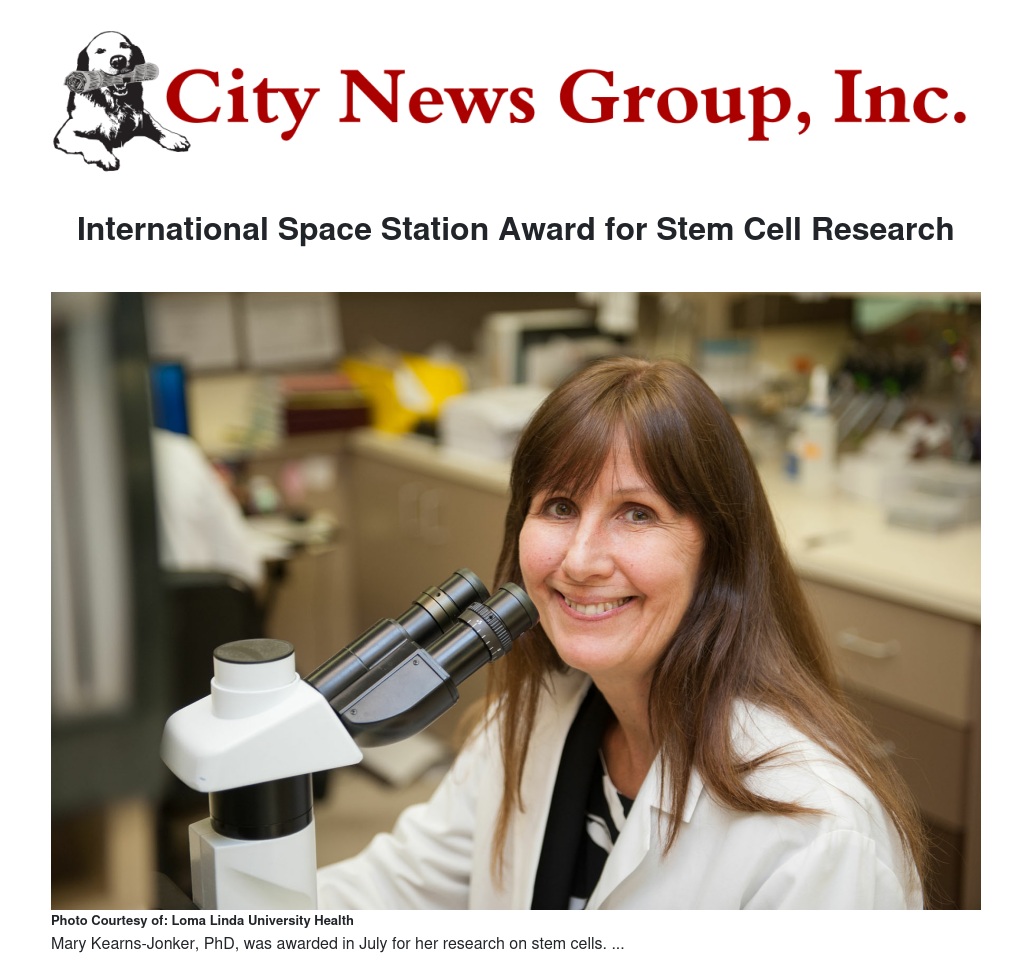 A Loma Linda University faculty member was awarded the 2018 International Space Station Compelling Results Award in Biology and Medicine in July for her research on the impact of microgravity and spaceflight on neonatal and adult cardiovascular progenitor cells.