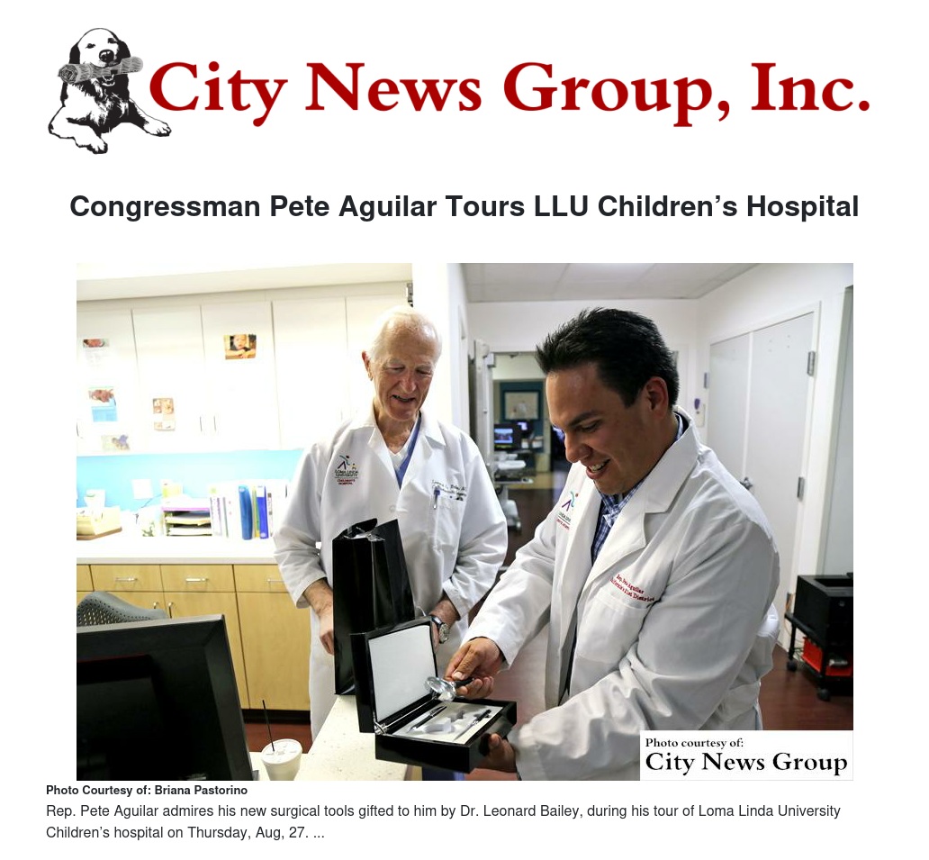Representative Pete Aguilar (CA-31) visited Loma Linda University Children’s Hospital (LLUCH) for a tour on Thursday, Aug. 27.