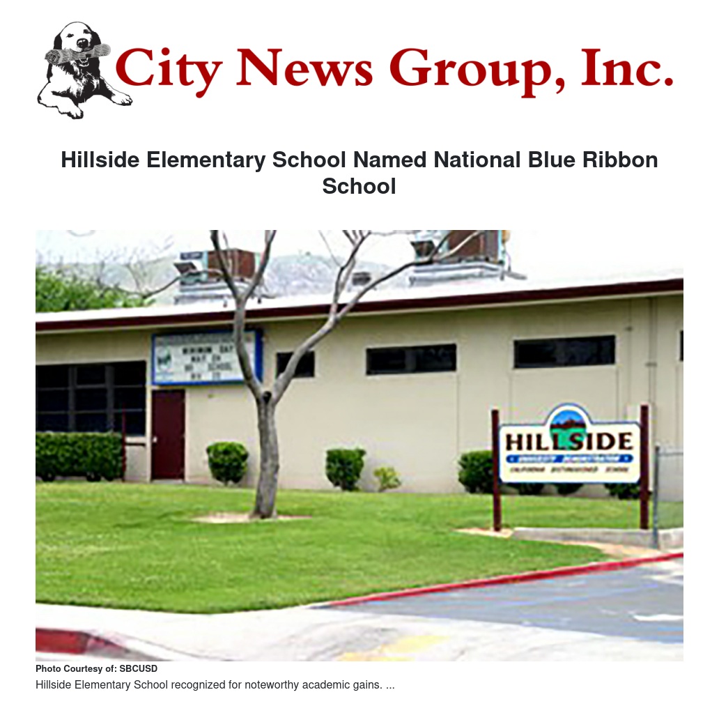 Hillside joins two other National Blue Ribbon schools in the San Bernardino City Unified School District, Richardson PREP HI Middle School and Middle College High School.