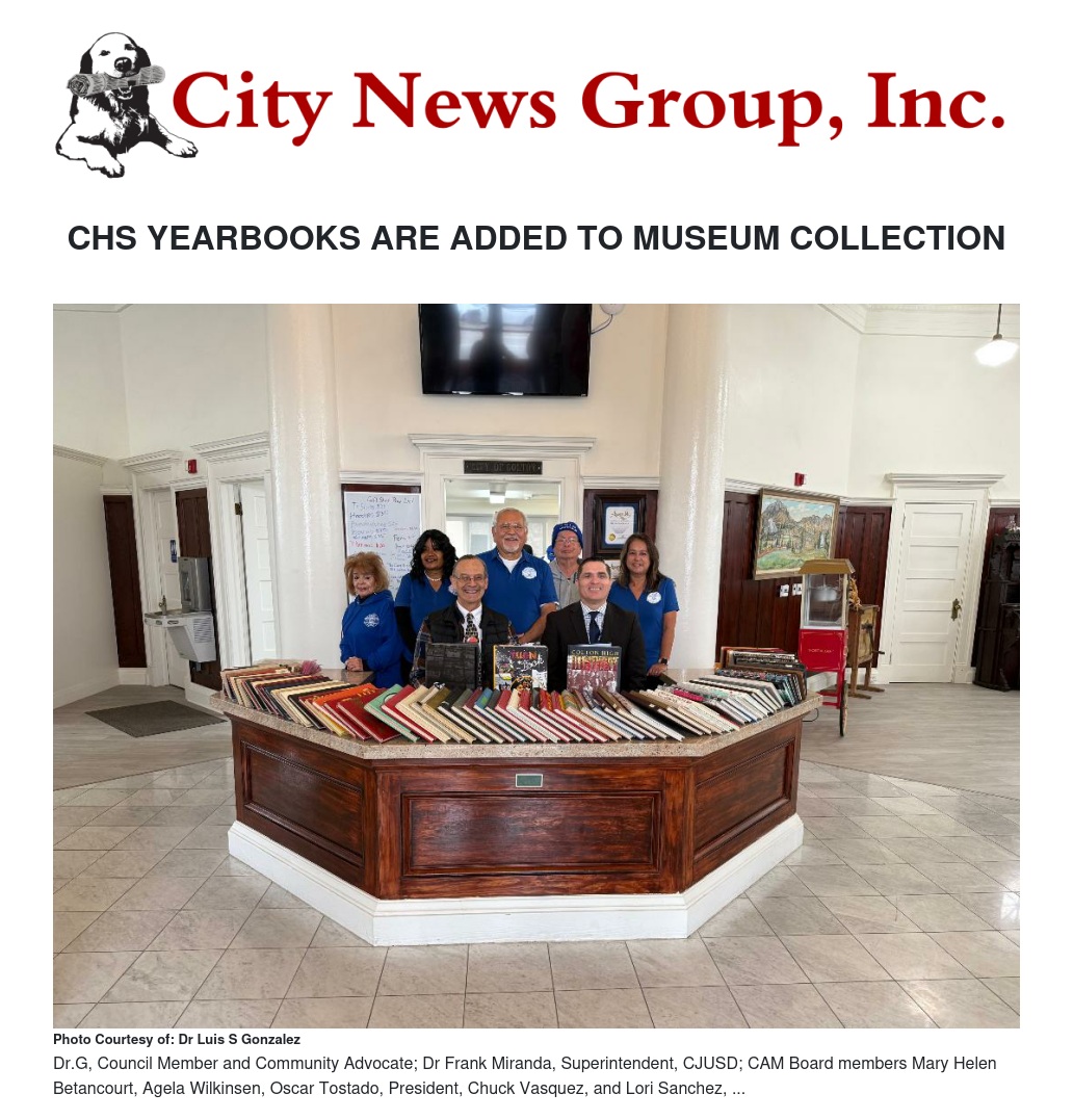 Earlier this year, DrG communicated with Dr. Frank Miranda, Supt. of the Colton Joint Unified School District, to ask for his help in acquiring the three yearbooks, which would essentially keep the valued collection alive and up-to-date. After working with staff, the Superintendent’s office contacted Dr.G saying the three books have been acquired and arrangements were promptly made to present them to the museum for a formal presentation. Dr Miranda commented, “It’s an honor to donate these yearbooks to the Colton Area Museum for the purpose of preserving the rich history and memories of our students for generations to come.”