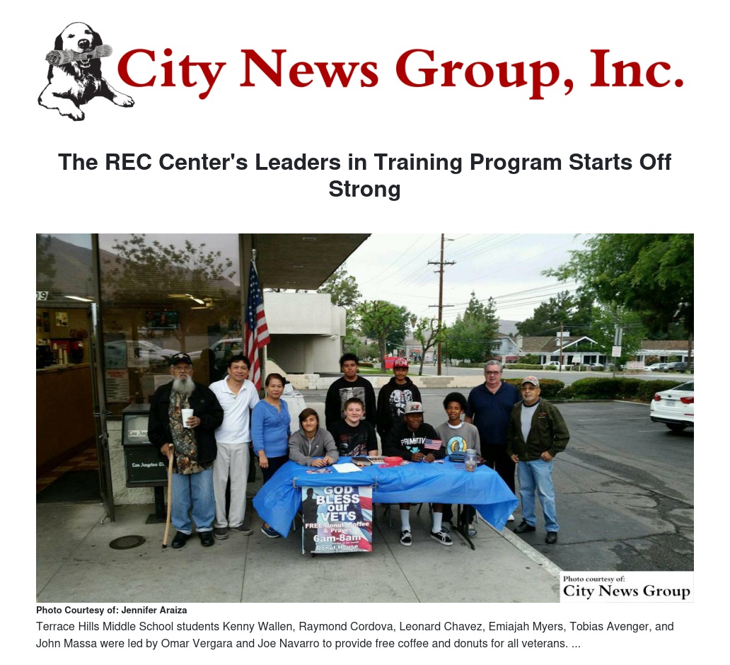 The REC Center located in Grand Terrace has brought many programs and opportunities to the community; one of their newest programs is underway: the “Leaders in Training” program, is led by Terrace Hills Middle School's math teacher Omar Vergara.